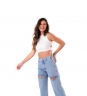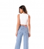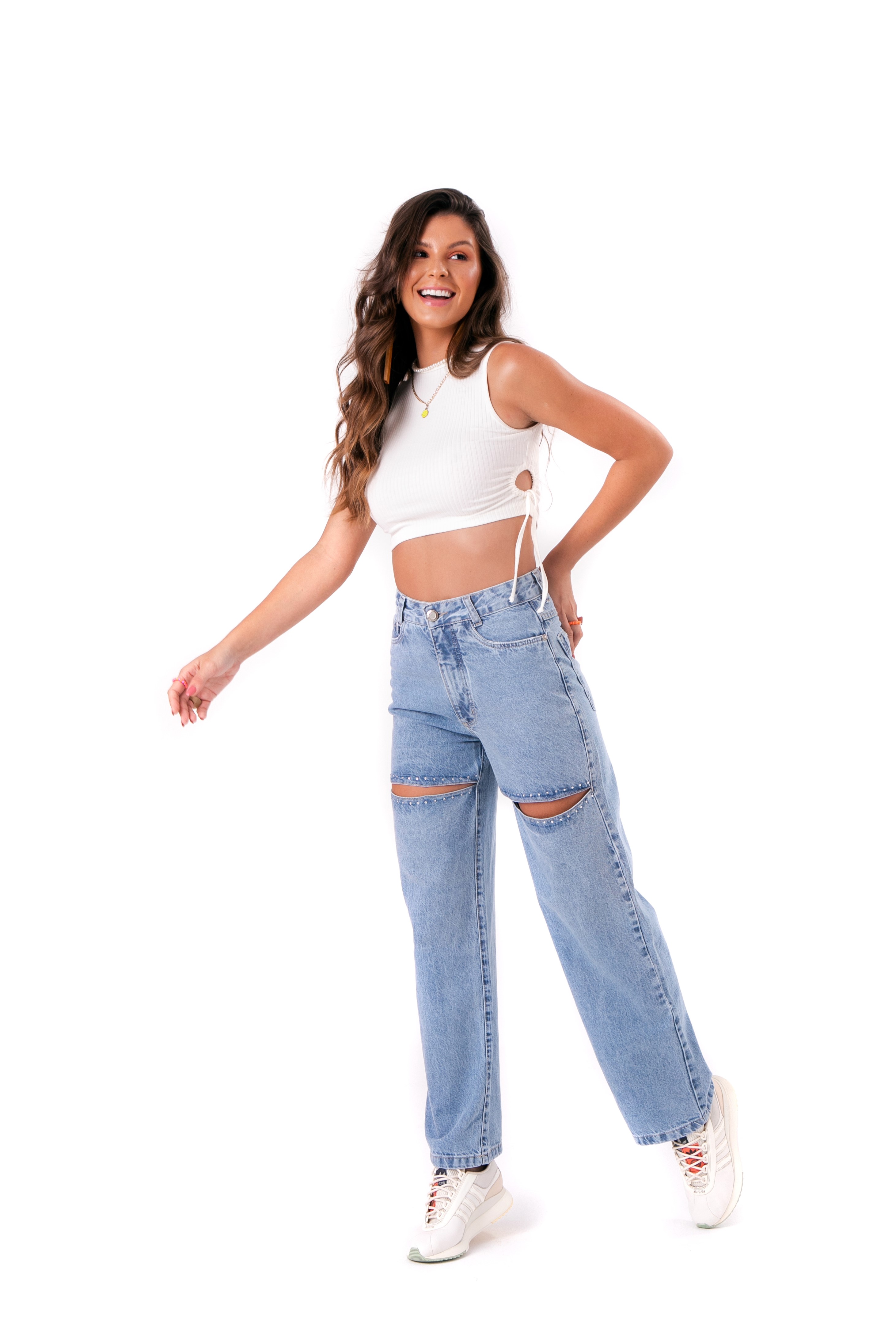 Cropped desenvolvida em tecido malha canelada, com vazado na lateral e ajuste em rolutê.