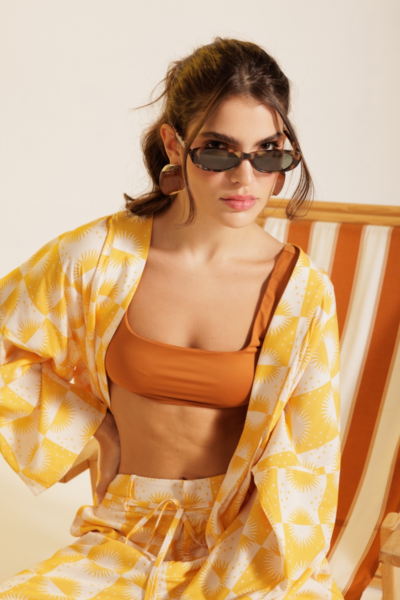 Top Sunny Day com alças largas, decote reto e estrutura ajustada ao corpo, garantindo conforto e sustentação. Confeccionado em tecido 90% poliamida e 10% elastano.