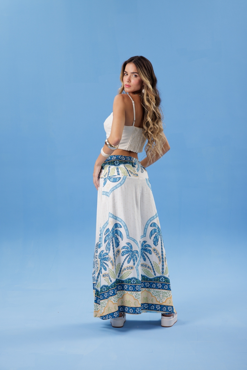 Cropped Pesponto Dune com alças finas e estrutura marcada pelo pesponto duplo na caixa de busto. Possui recortes que valorizam o caimento e fechamento por zíper destacável nas costas. Confeccionado em tecido 80% rami e 20% algodão.