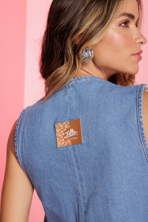 Colete Jeans Oceane levemente cavado, com decote em V e fechamento por botões frontais. Confeccionado em tecido 100% algodão.