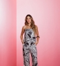 Bata Raízes, estampada em modelagem solta, com decote reto e detalhe em aviamento na frente. Possui barra estilo lenço e parte frontal levemente mais curta. Confeccionada em tecido 100% viscose.