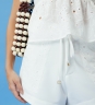 Short Laise Botanic Algodão em tecido 81% poliéster, 15% viscose e 4% elastano, com bolsos frontais em laise, passantes no cós, amarração em rolotê com ponteiras, fendas laterais e comprimento curto.
