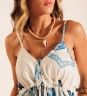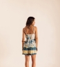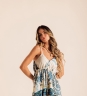 Macaquinho Oásis em tecido 100% viscose, com modelagem fluída. Possui botões bombê no busto e canal de rolete com viés para amarração frontal, trazendo ajuste delicado na cintura.