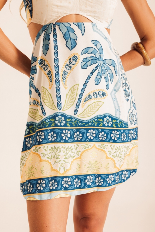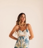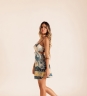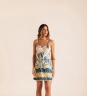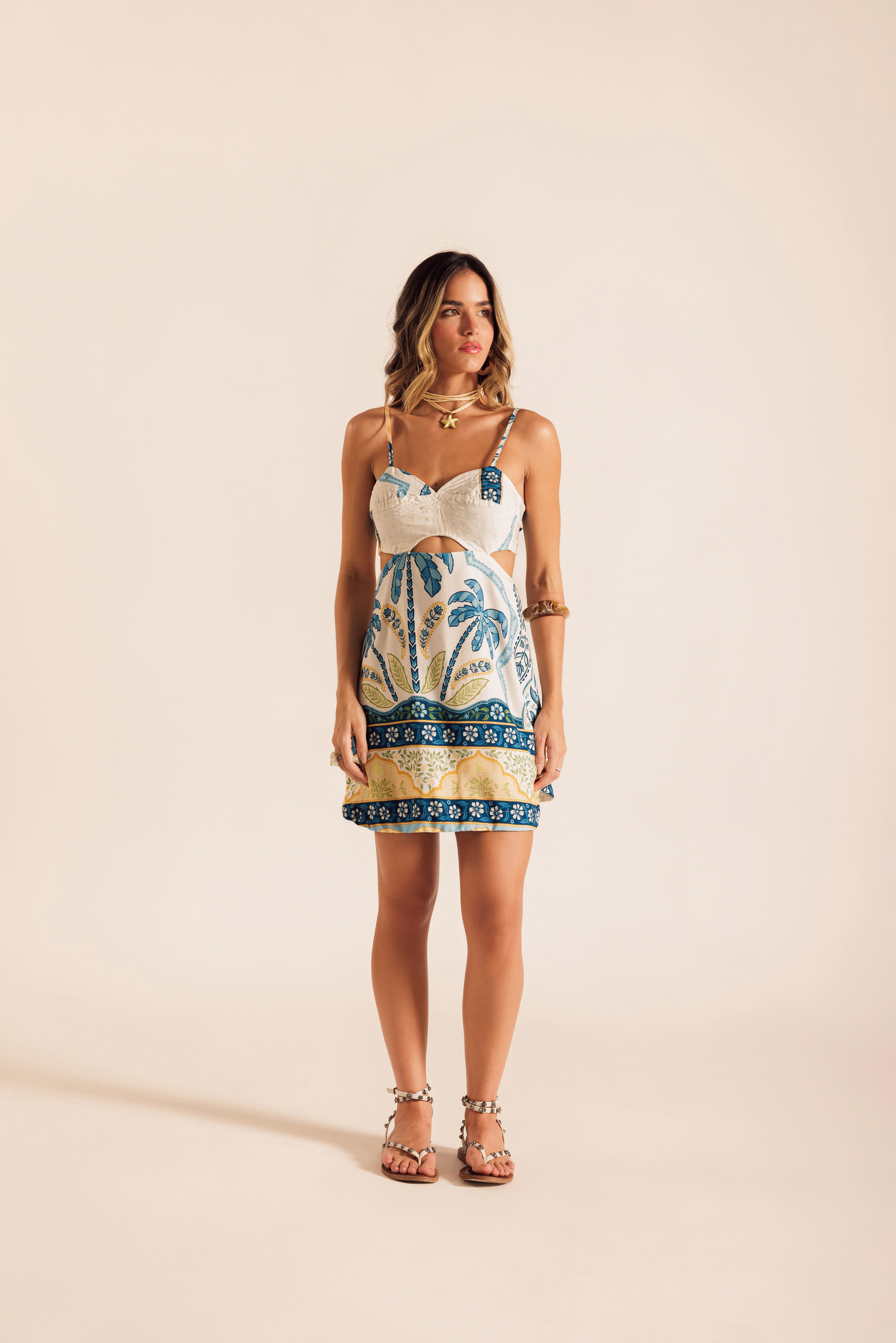 Vestido Curto Oásis em tecido 100% viscose, com recortes e pespontos no busto. Possui amarração nas costas, além de vazados frontais e laterais que trazem leveza ao visual.