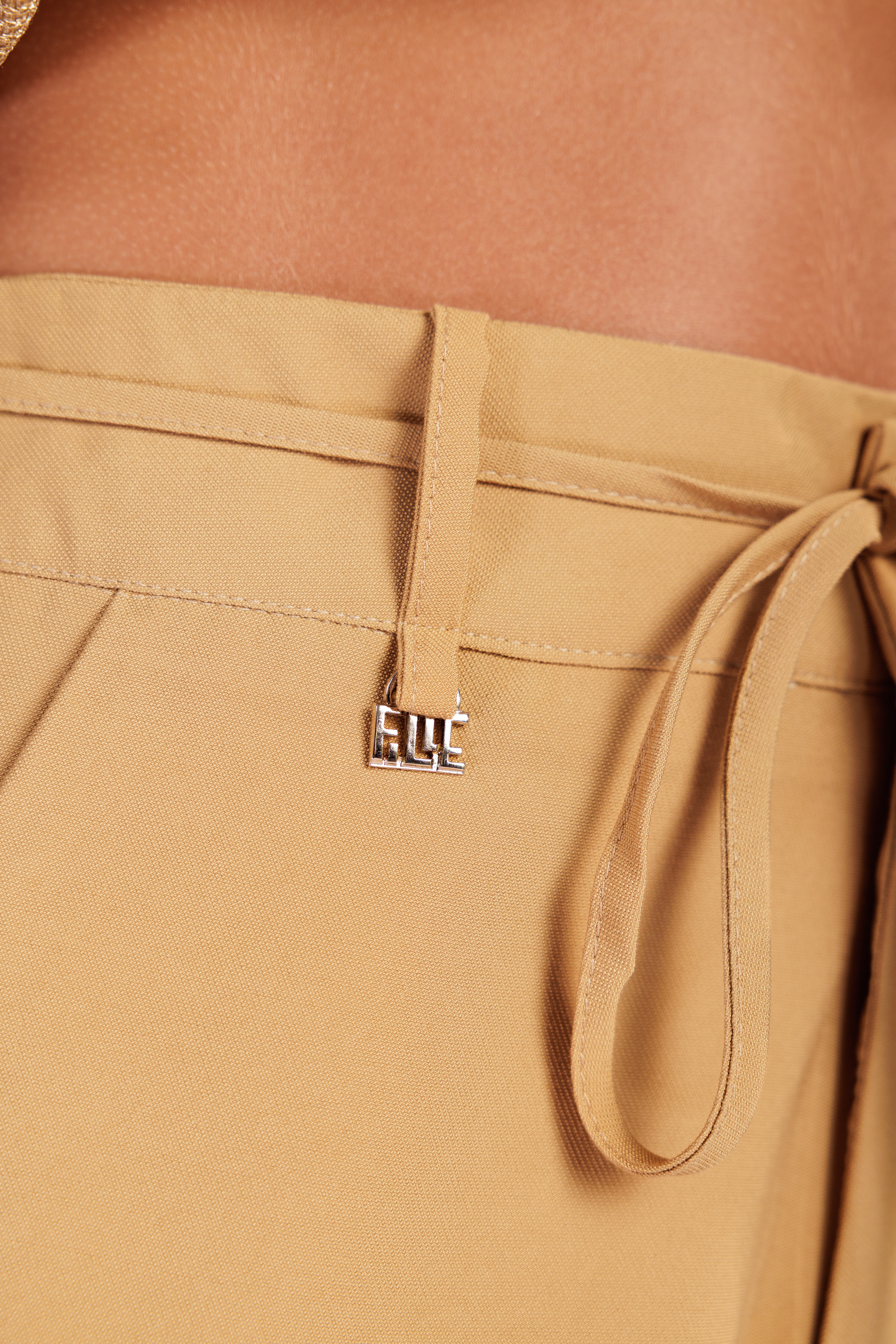 Short Pespontos Texture. De alfaiataria em piquet, com barra ondulada pespontada e fechamento por colchete. Acompanha viés para amarração no cós. Composição: 92% viscose e 8% poliéster.