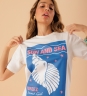 T-shirt Off Summer de modelagem clássica com silk frontal em destaque, trazendo cores frescas e mood praiano. Confeccionada em tecido 100% algodão, com toque macio e confortável.