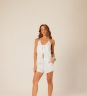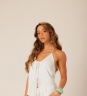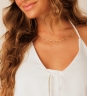 Blusa Summer em linho liso off-white, com frente dupla e amarração delicada no viés. Feita em tecido 70% viscose e 30% linho, traz barra arredondada e um visual leve e moderno.