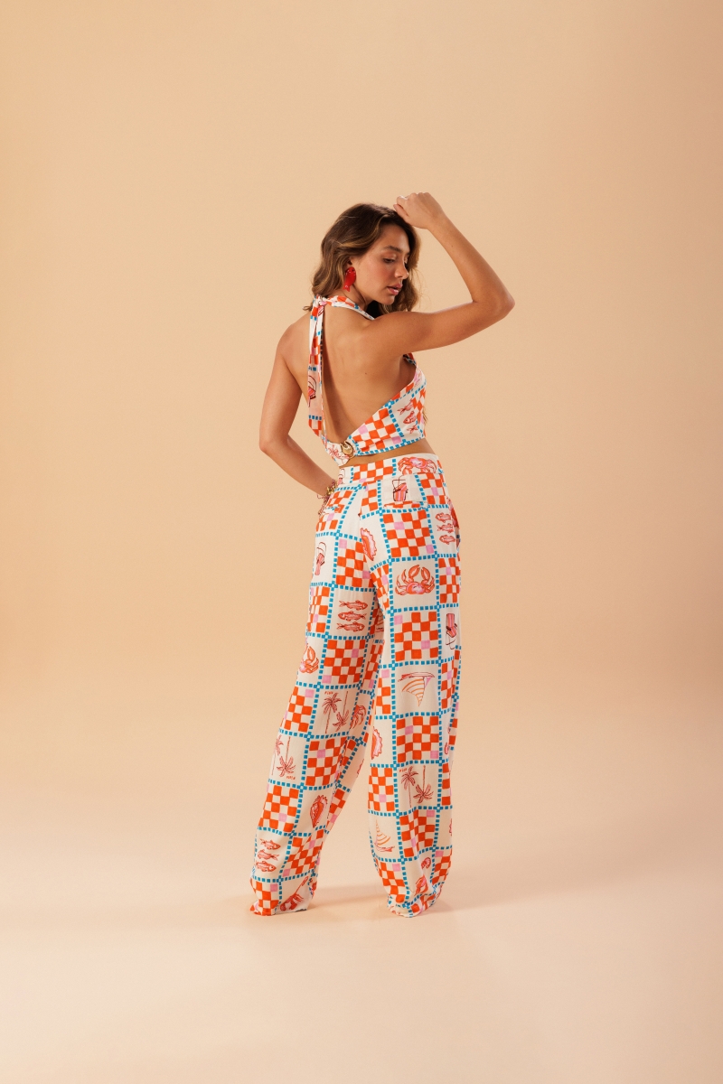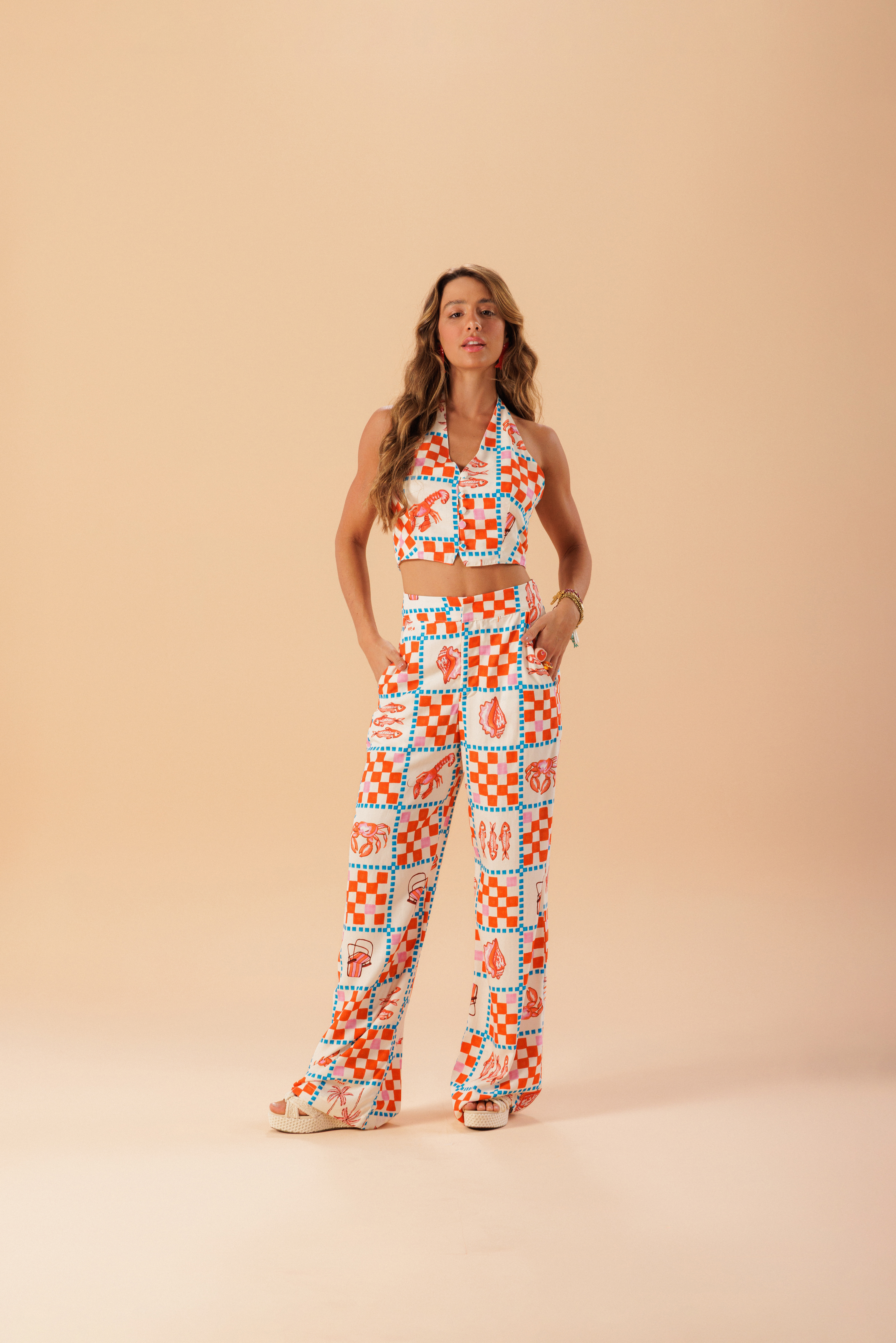 Colete Concha Tropical 100% viscose com botões bombê e modelagem que deixa as costas à mostra. O detalhe dourado de concha no encaixe traseiro adiciona um toque moderno e cheio de personalidade.