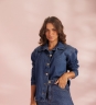 Camisa Jeans Glow em 100% algodão, com modelagem mais oversized. Possui aplicação de strass na parte frontal e nos ombros, fechamento por botões e fenda lateral arredondada que dá mais movimento à peça.