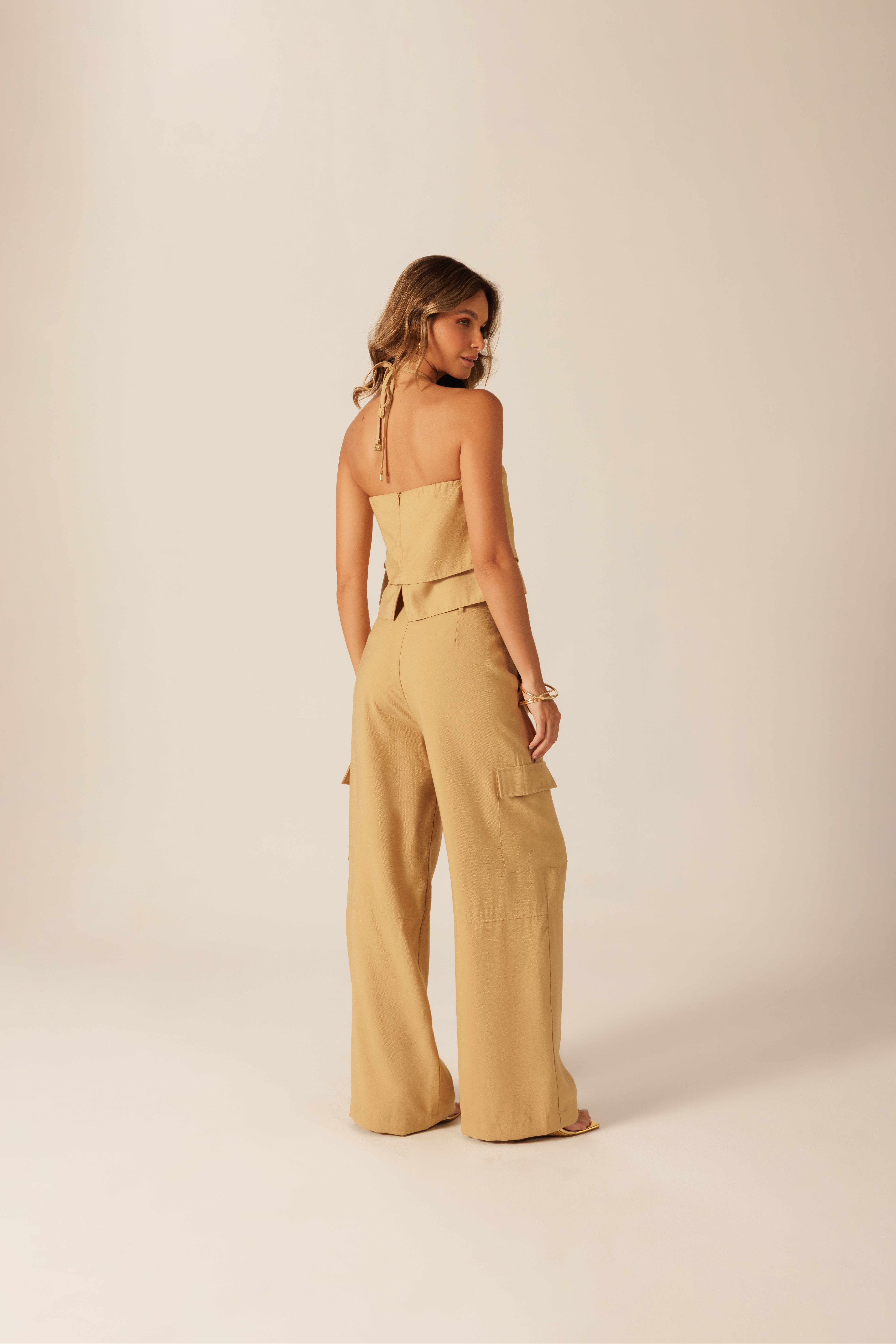 Blusa Brisa Natural em 93% viscose e 7% poliéster, com alças finas que cruzam no pescoço e caimento solto. Modelo com camadas de babados, zíper invisível nas costas e pequena fenda que completa o fechamento.