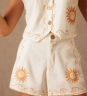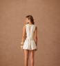 Short Linen Amber Off em tecido de viscose com linho, com silk na frente. Modelagem com barra levemente asa delta, elástico nas costas e fechamento frontal por colchetes.