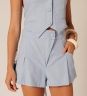 O Short Linem Blue Frescor aposta na modelagem soltinha com pences e bolsos funcionais, trazendo conforto com elegância casual, tendência forte da estação. Em Linho Caribe, é leve, versátil e perfeito para composições frescas.
