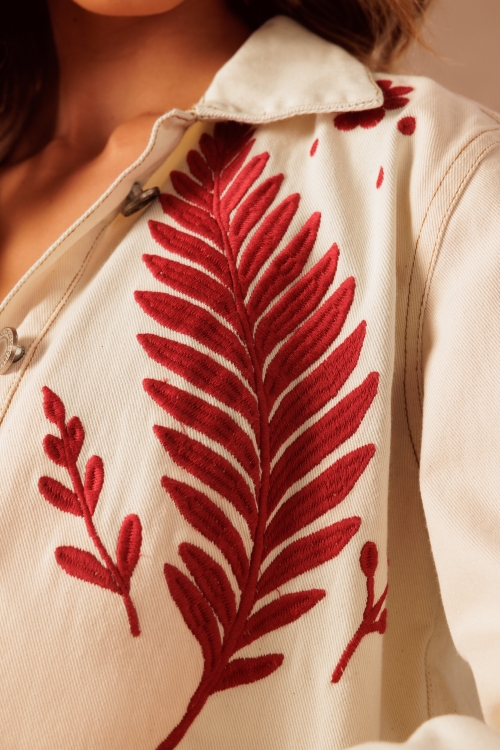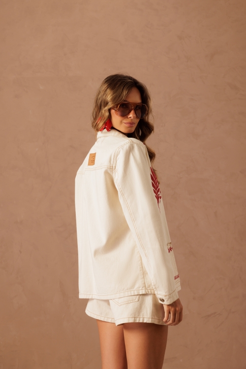 Jaqueta em 100% algodão com caimento leve e confortável. Possui bordado exclusivo em contraste que valoriza a peça com personalidade. Ideal para composições versáteis, do casual ao sofisticado.