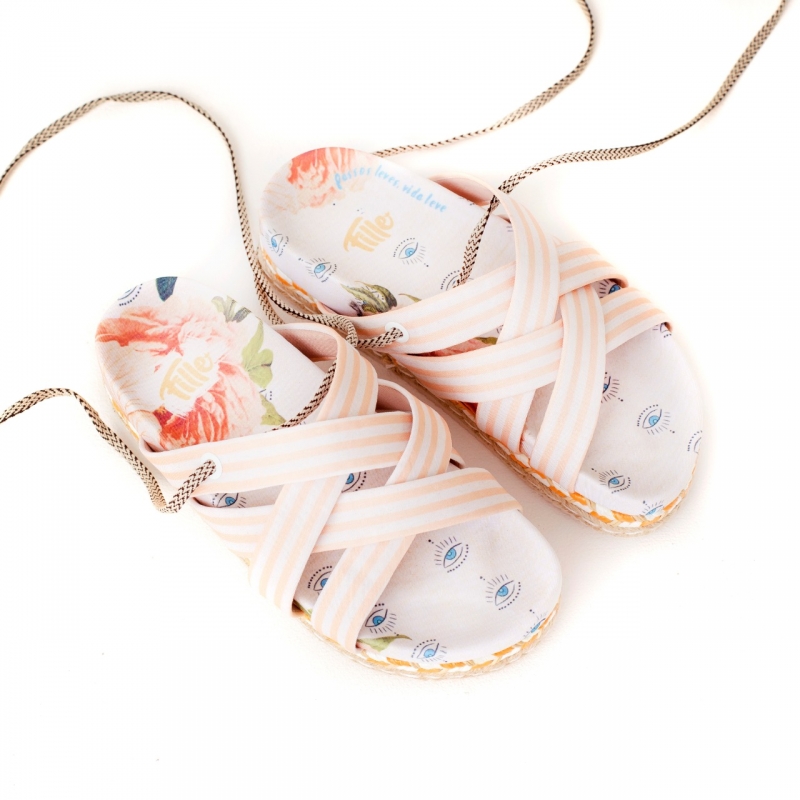 Sandália flat desenvolvida em borracha, revestida com tecido e jutas naturais!