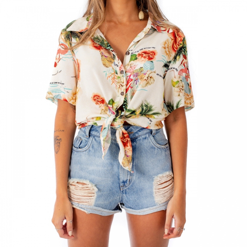 Camisa desenvolvida em tecido viscose, gola e botões frontais, modelagem ampla e estampa sereia tropical!
