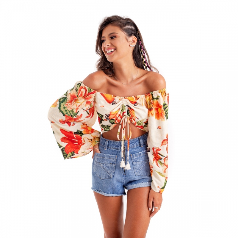 Short desenvolvido em tecido jeans de gramatura média, bolsos frontais com recortes e modelagem cintura alta.
