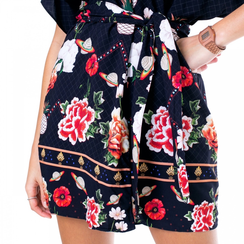 Kimono desenvolvido em tecido viscose, acompanha faixa e pode ser usado como vestido.