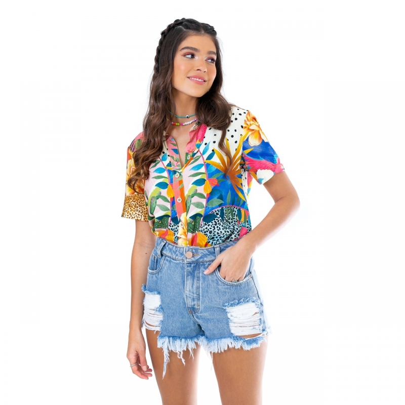 Short desenvolvido em tecido jeans de gramatura média, passantes no cós, modelagem intermediária, e detonados frontais.