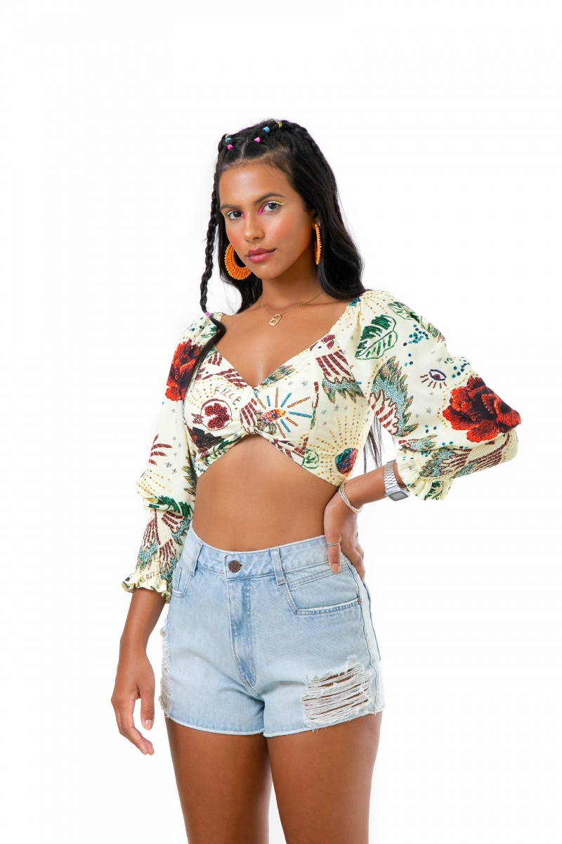 Shorts desenvolvido em tecido jeans de gramatura média, passantes no cós, modelagem cintura alta e lavagem vintage.