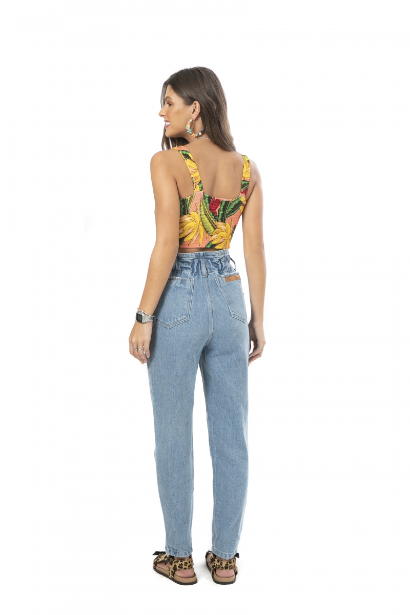 Top desenvolvido em tecido canelado e estampa de bananas.