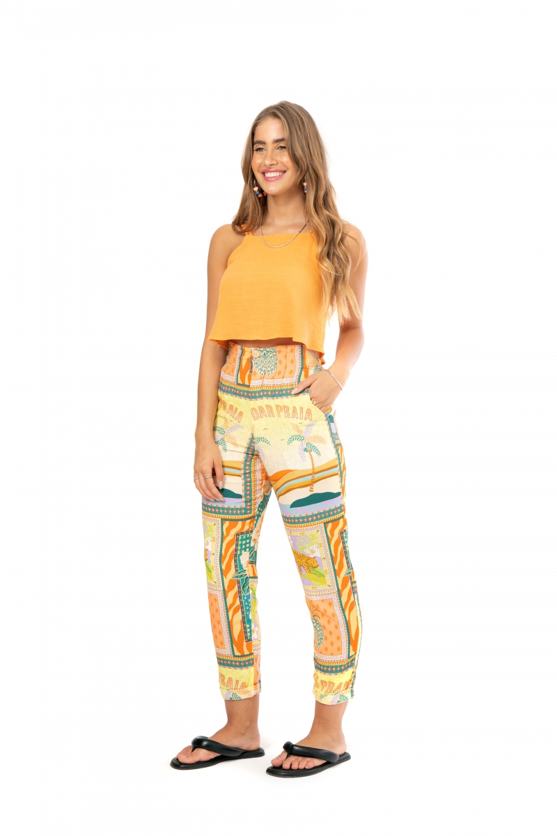 Cropped desenvolvida em tecido viscose com leve textura, alças duplas na cor tangerina.