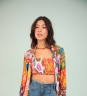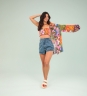 Camisa desenvolvida em tecido viscose, detalhe em mangas elástico e top elastex.