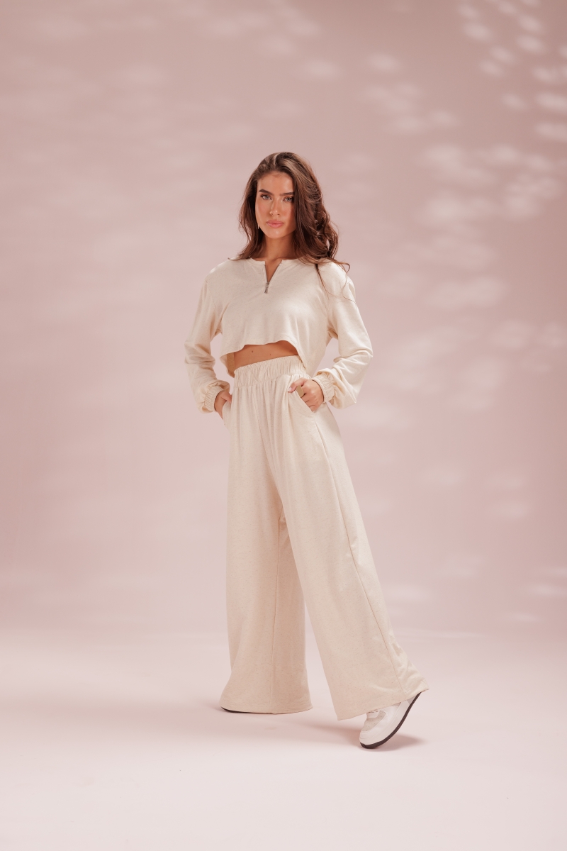 Calça desenvolvida em tecido moletinho de gramatura média, toque macio e confortável, elástico embutido no cós para melhor acomodação e bolsos frontais utilitários.