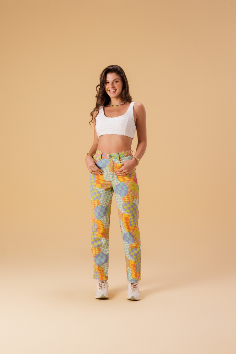 Calça jeans desenvolvida em tecido 100% algodão, com estampa exclusiva Fille.