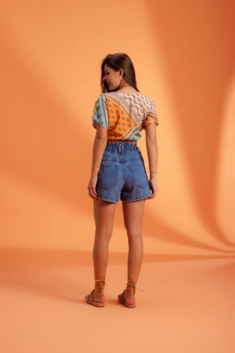 Cropped desenvolvido em tecido viscose com estampa exclusiva Fille.