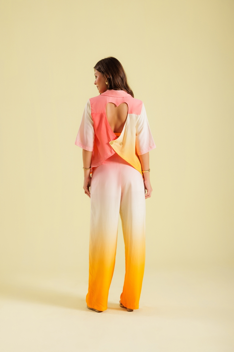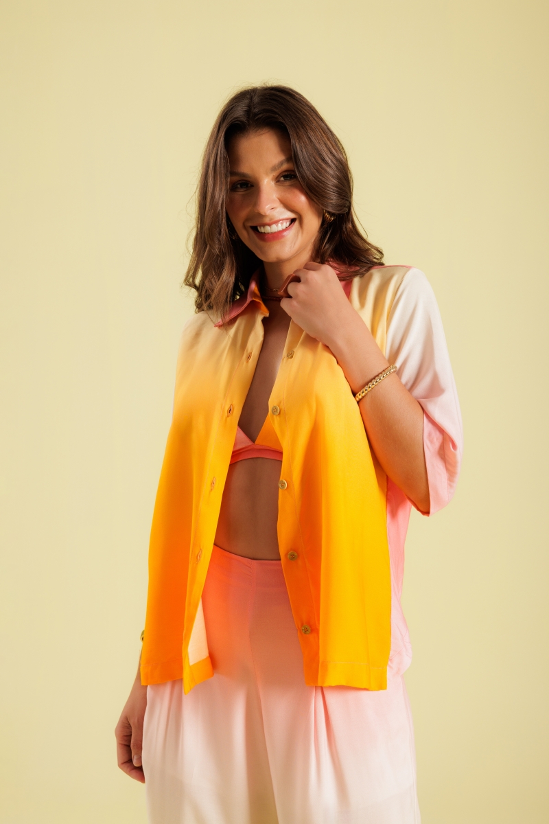 Camisa desenvolvida em tecido viscose, estampa exclusiva Fille, com recorte vazado de coração na costa.