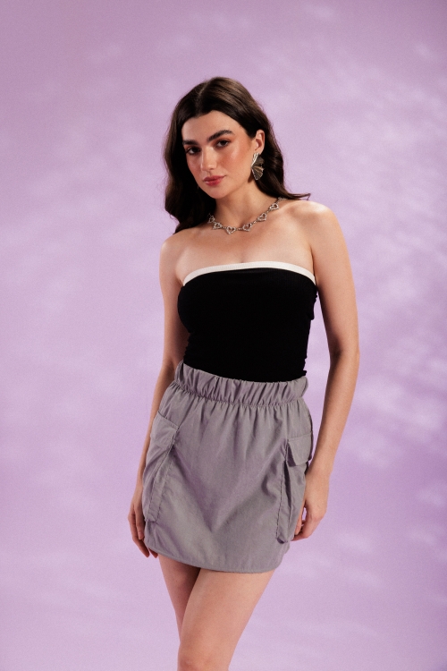 Saia desenvolvida em tecido de poliamida com toque suave, bolsos cargo laterais.