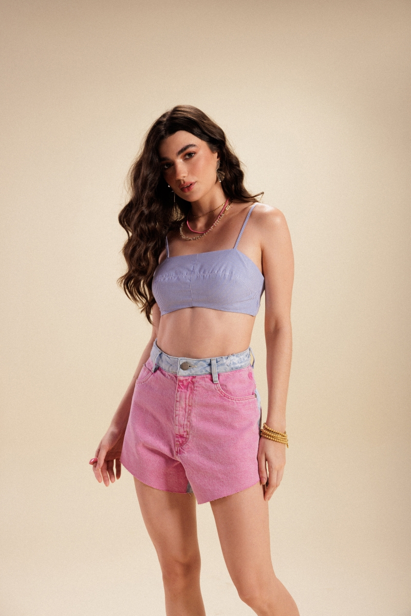 Shorts bicolor desenvolvido em tecido jeans 100% algodão, com recorte de estrela no bolso costa.