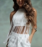Desenvolvido em tecido alfaiataria com elastano, e aplicação de macramê frontal.