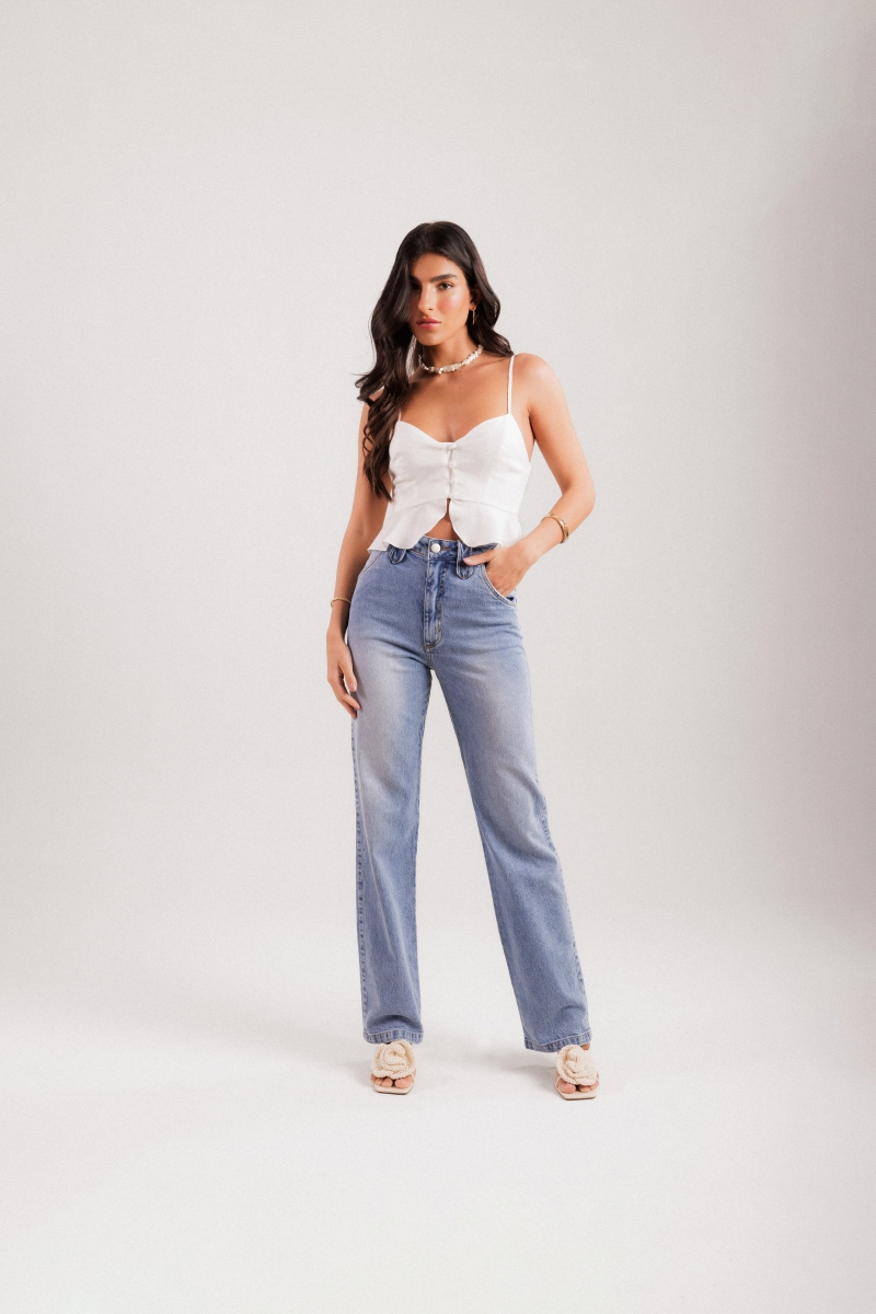 Calça Reta Jeans Fabi
