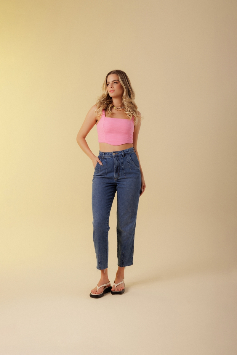 Corset desenvolvido em tecido tweed de composição algodão com viscose.