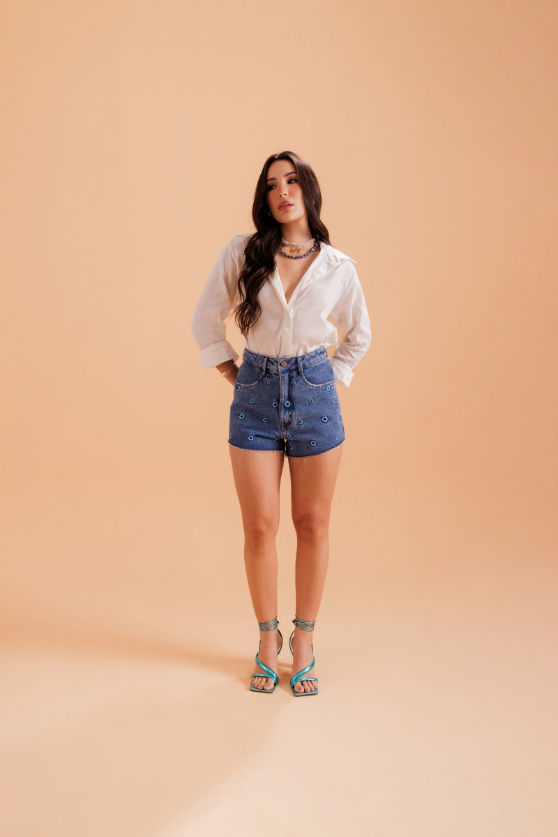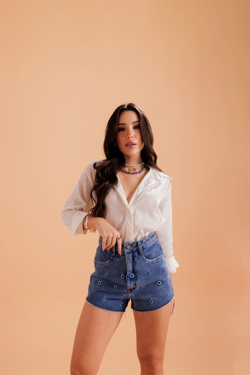 Camisa desenvolvida em tecido de composição linho com algodão, com botões Fille.