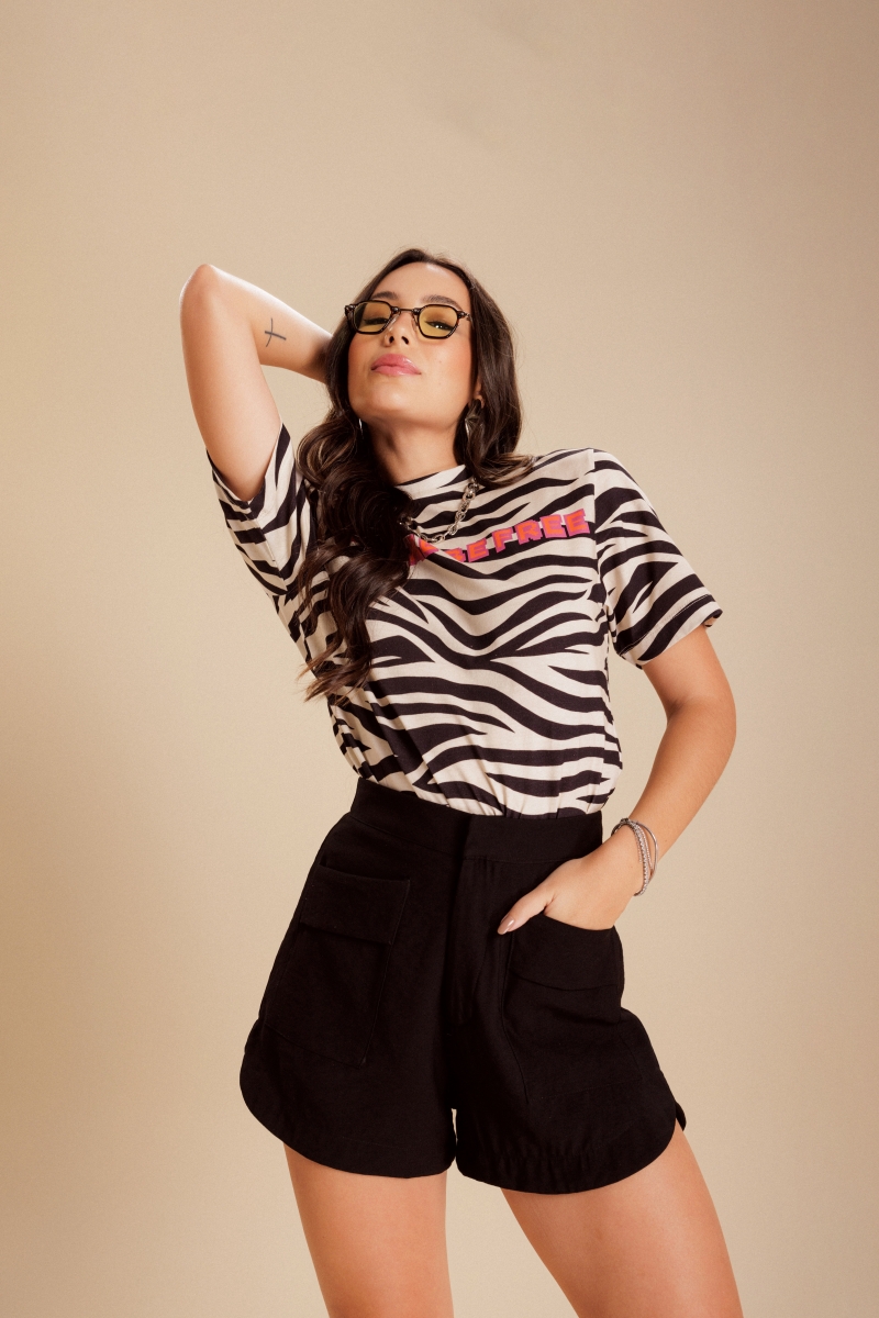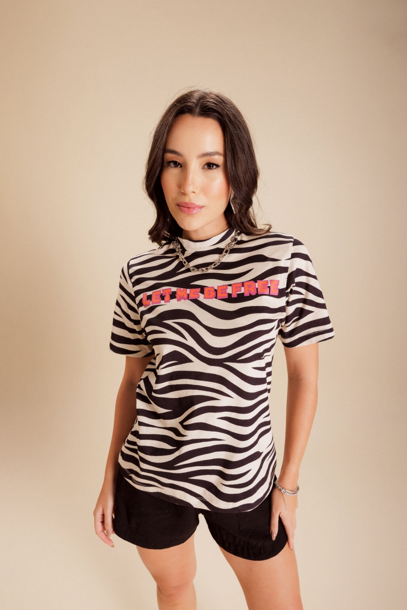 T-Shirt desenvolvida em tecido algodão, silk frontal exclusivo Fille, com abertura na gola costa e botão encapado no tecido, com estampa exclusiva Fille
