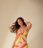 Vestido desenvolvido em tecido viscose com estampa exclusiva Fille, vazados laterais com franzido frontal.