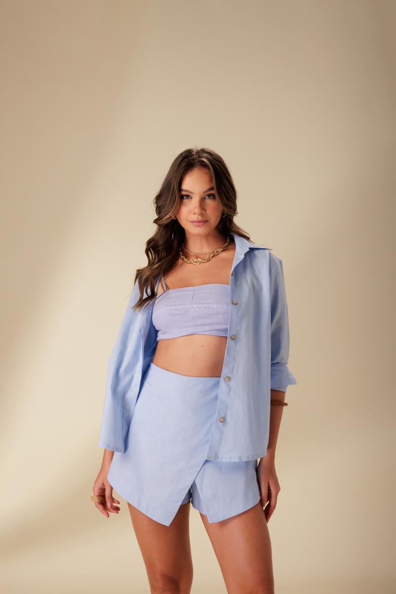 Esta camisa é confeccionada em uma mistura de linho e algodão, garantindo leveza e conforto. Com um toque suave e fresco, ela possui abotoamento frontal, mangas longas ajustáveis e gola clássica, trazendo elegância e versatilidade ao look. Ideal para compor produções casuais ou sofisticadas, sendo uma peça-chave para o guarda-roupa.