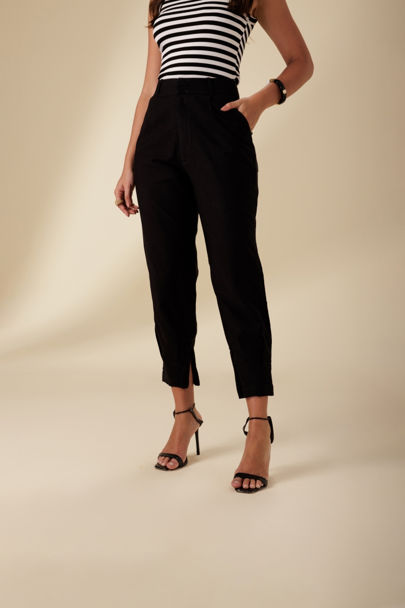 Esta calça de corte alfaiataria combina modernidade e conforto. Confeccionada em um tecido encorpado de viscose com poliéster, ela possui um caimento impecável, ideal para diversas ocasiões. O detalhe do zíper no tornozelo adiciona um toque moderno e funcional, permitindo ajuste e versatilidade ao look. Perfeita para compor produções elegantes com uma dose de estilo.
