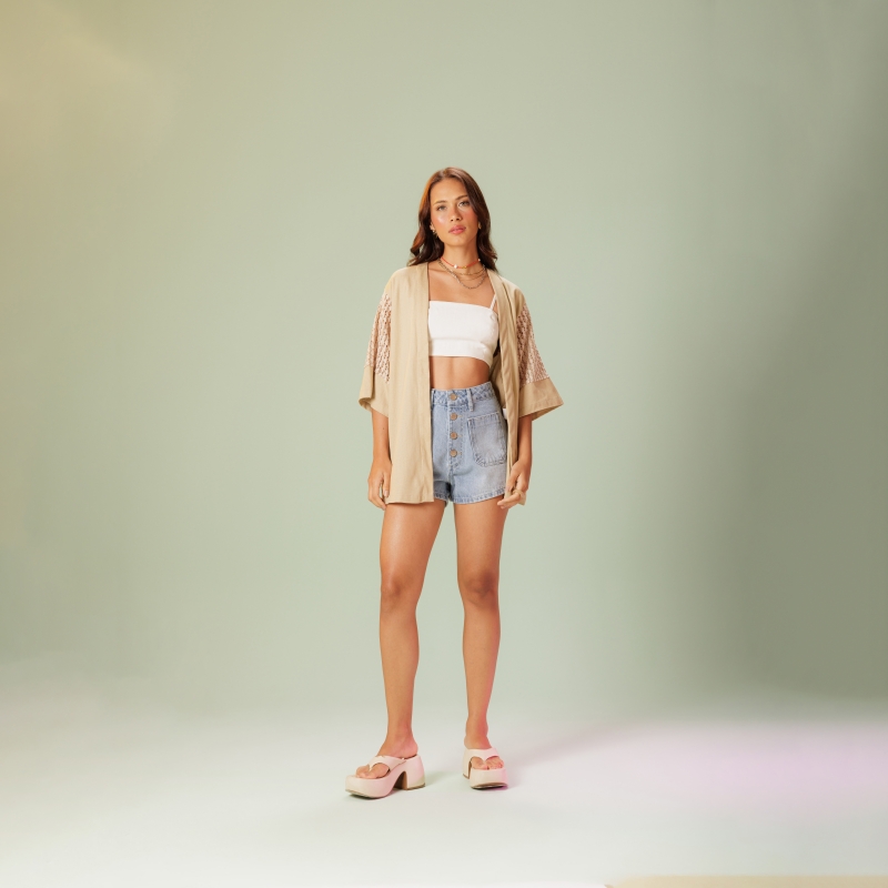 Short jeans 100% algodão. Com lavagem clara e fechamento frontal por botões aparentes, tem uma modelagem moderna e cintura alta que realça a silhueta. Os bolsos frontais funcionais e os bolsos traseiros embutidos tornam a peça descolada e prática para compor looks descomplicados e cheios de personalidade.