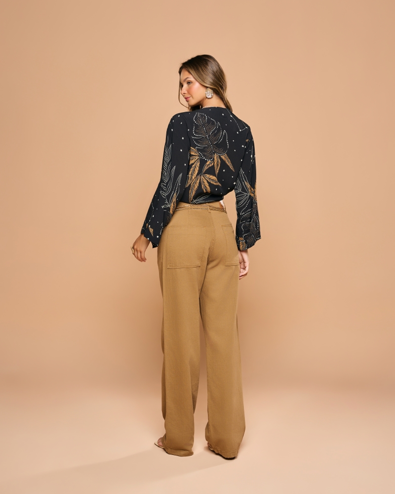 Kimono Floresta Estelar chega com aquela pegada leve. Feitos em 100% viscose, os dois têm caimento fluido e toque suave, perfeitos pra compor um look fresco e atual. O top reto com alças finas se ajusta perfeitamente ao corpo e o Kimono de modelagem ampla dá o toque moderno ao look.