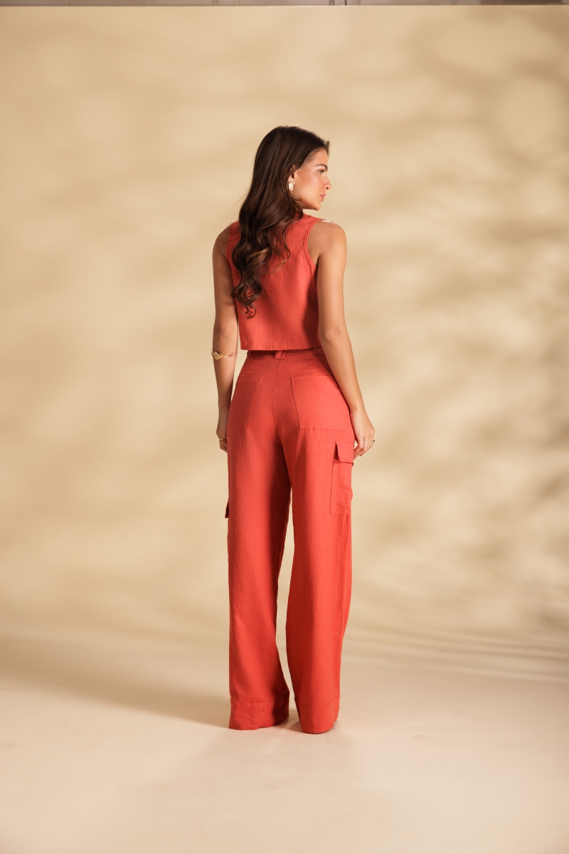 Blusa Assimétrica Olaria com decote em V, frente levemente ondulada e fechamento com botões forrados. Modelagem ajustada ao corpo. Confeccionada em tecido de linho com viscose.