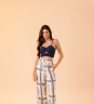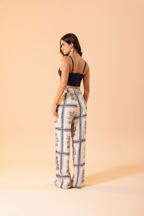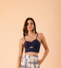 Cropped Pespontos Blue com alças finas, recorte vazado frontal e pespontos em todo o tecido. Possui zíper destacável nas costas e modelagem sem elástico.