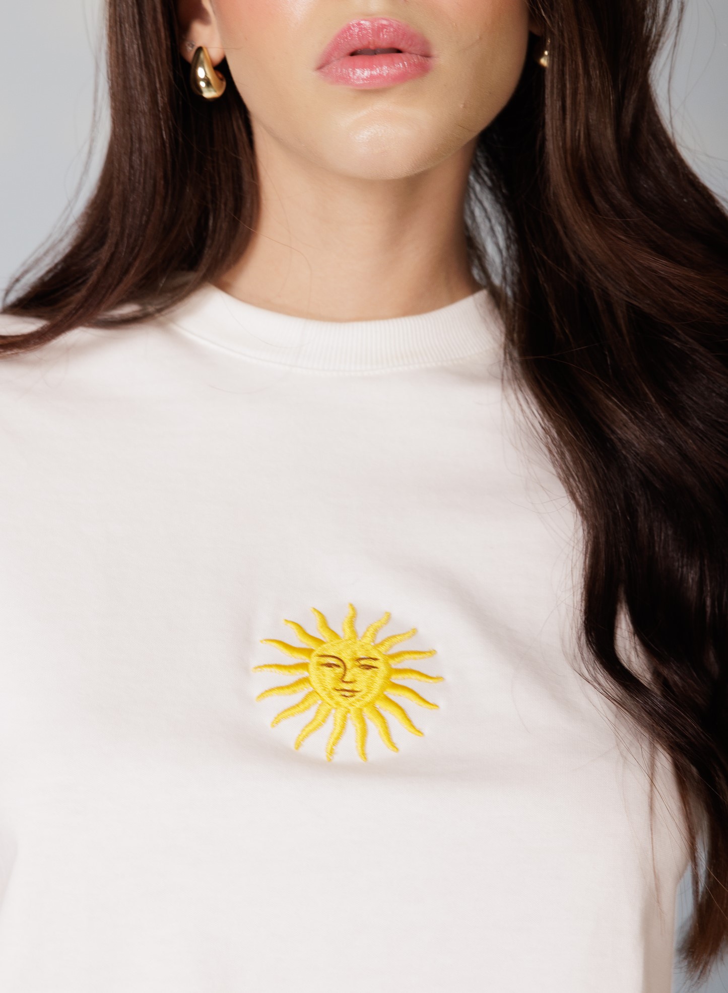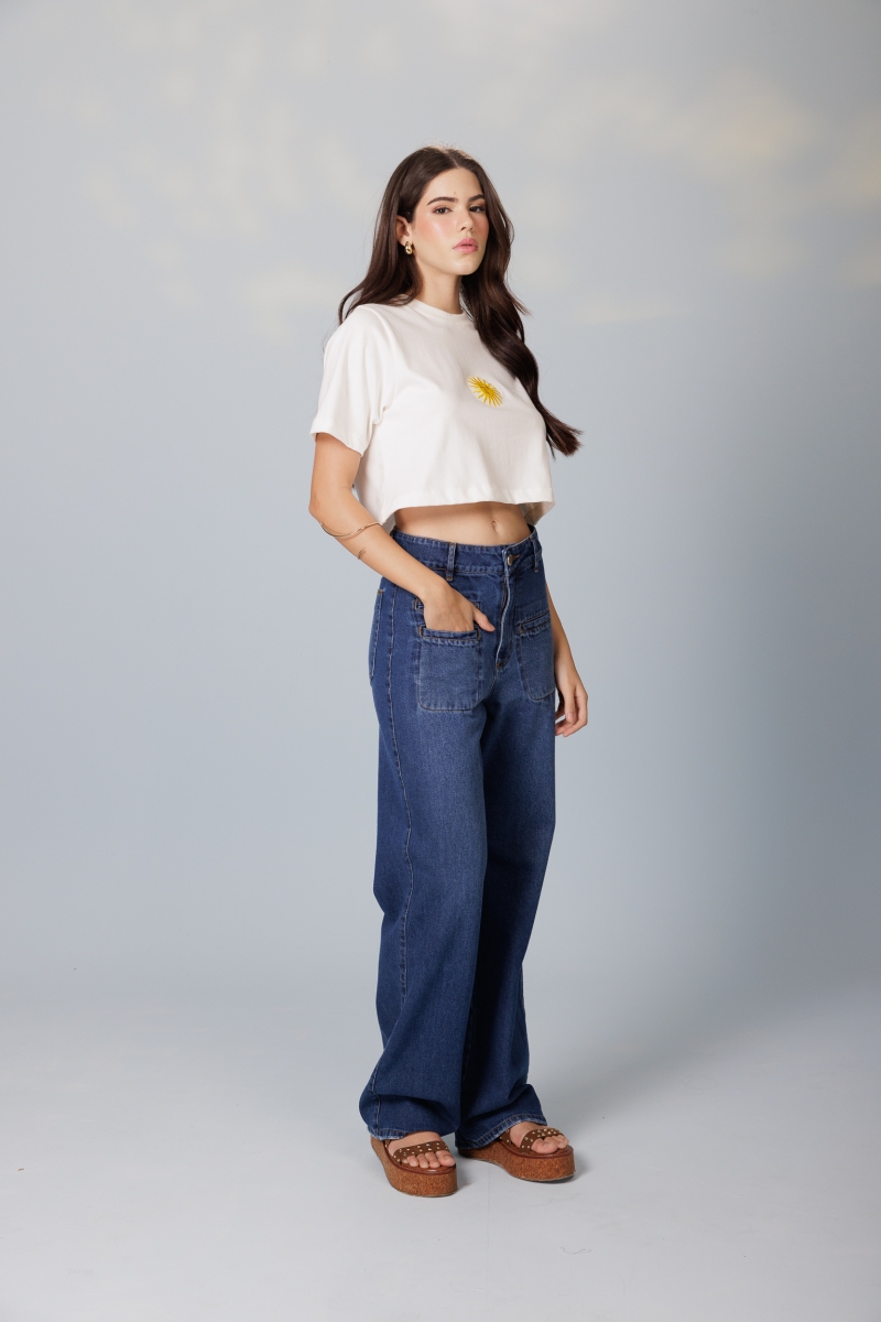 T-Cropped Bordado Solar 100% algodão com caimento despojado e gola tradicional. O destaque fica por conta do sol bordado no centro da peça — um toque divertido e cheio de personalidade.