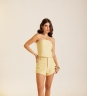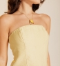 Corset Yellow Sense em tecido 92% viscose e 8% poliéster, com recortes frontais que valorizam o caimento. Possui zíper destacável nas costas e pequena fenda logo abaixo, trazendo acabamento moderno e detalhado.
