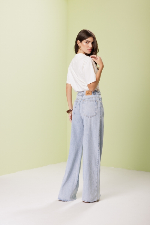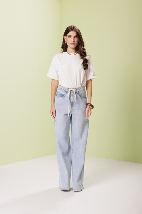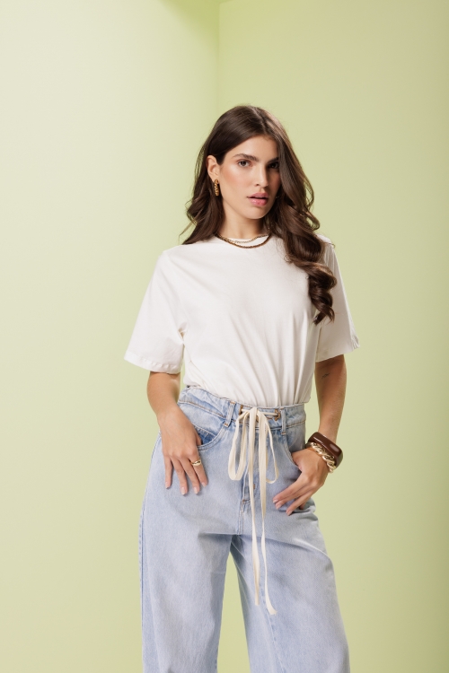 T-Shirt Off Nuvem confeccionada em malha de algodão, com modelagem solta e gola em ribana que garante melhor acabamento. Peça versátil e prática para compor diferentes produções. Tecido 100% algodão.