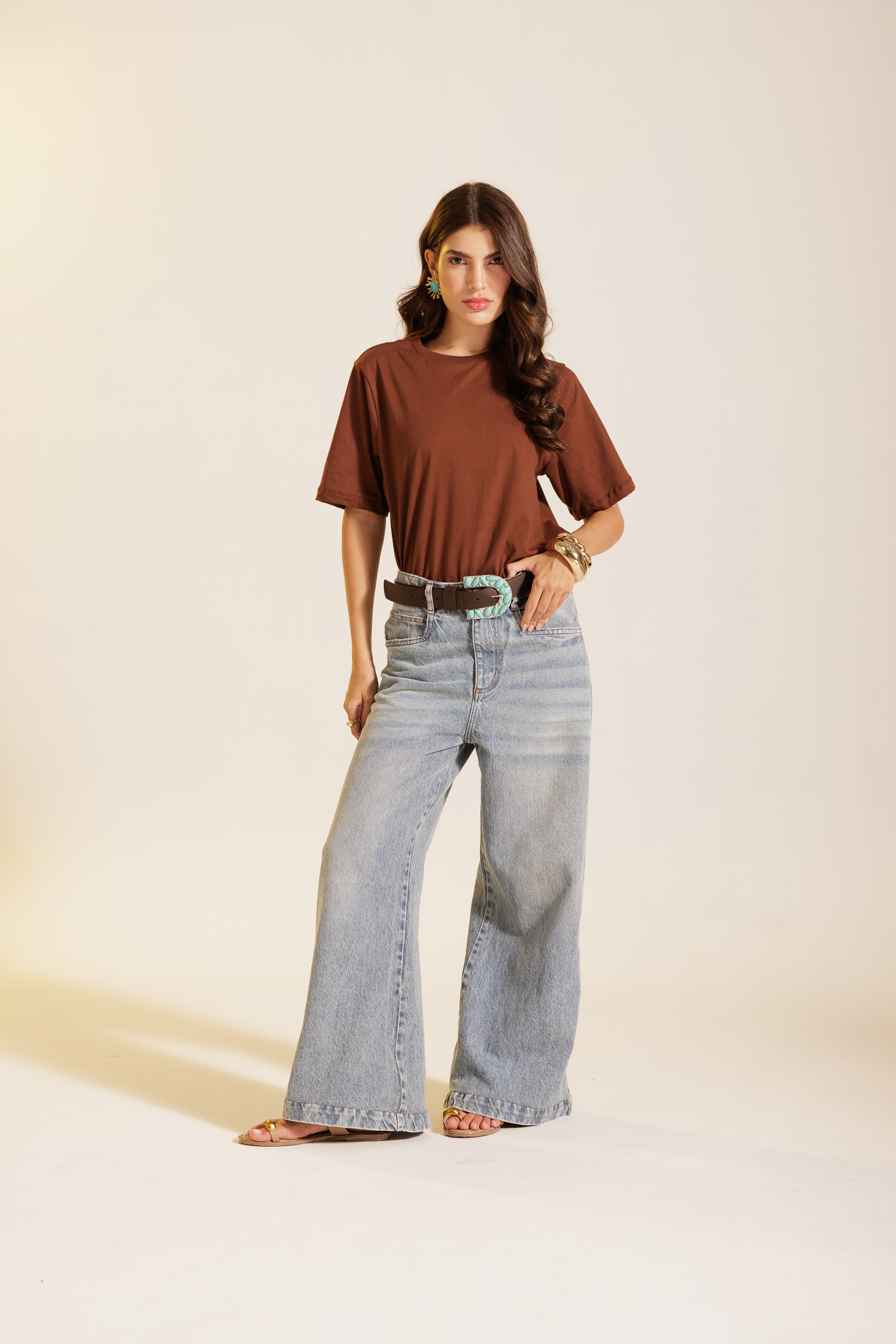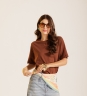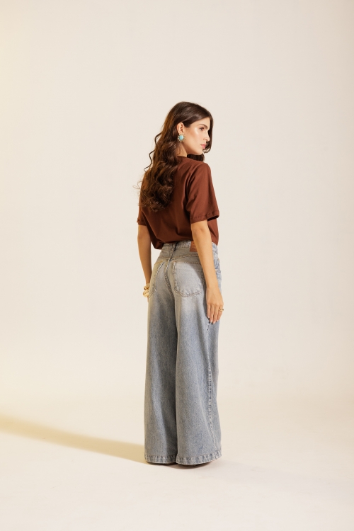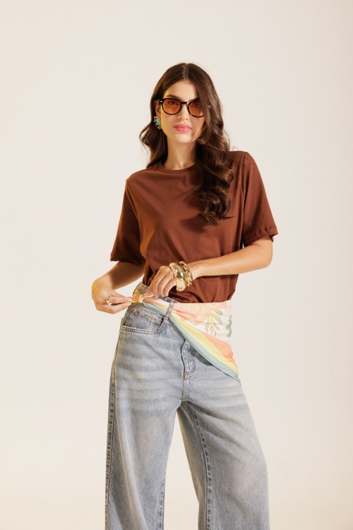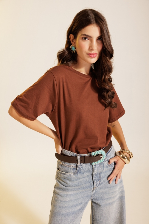 T-shirt Marrom Mocca em malha de algodão, com modelagem reta e gola de ribana. Confeccionada em tecido 100% algodão.