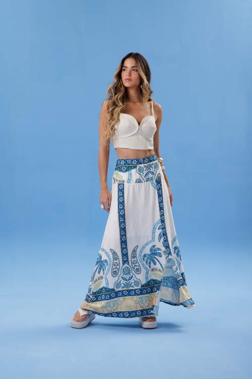 Cropped Pesponto Dune com alças finas e estrutura marcada pelo pesponto duplo na caixa de busto. Possui recortes que valorizam o caimento e fechamento por zíper destacável nas costas. Confeccionado em tecido 80% rami e 20% algodão.