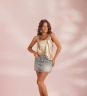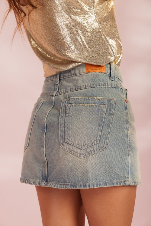 Minissaia Duo Poket em tecido 100% algodão. Possui bolsos frontais e detalhe nas costas com bolso duplo sobreposto. Cintura média com passantes, fechamento em botão e zíper.